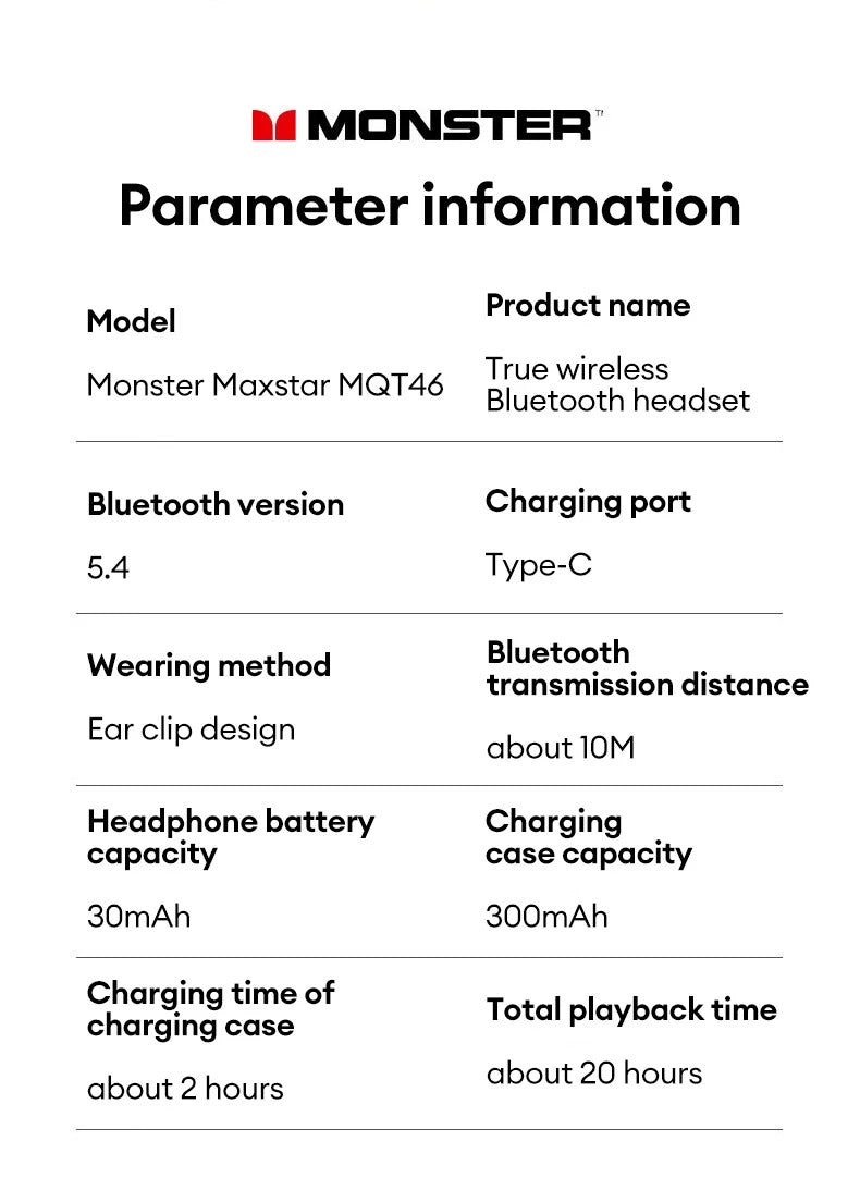 Experience superior sound with Monster MQT46 Bluetooth V5.4 earphones. Enjoy 25 hours of playtime, waterproof design, noise reduction, and crystal-clear calls — perfect for gaming, music, and everyday use.